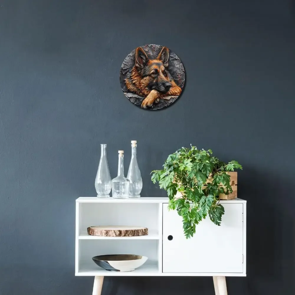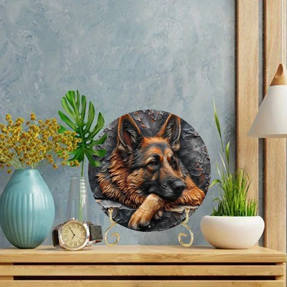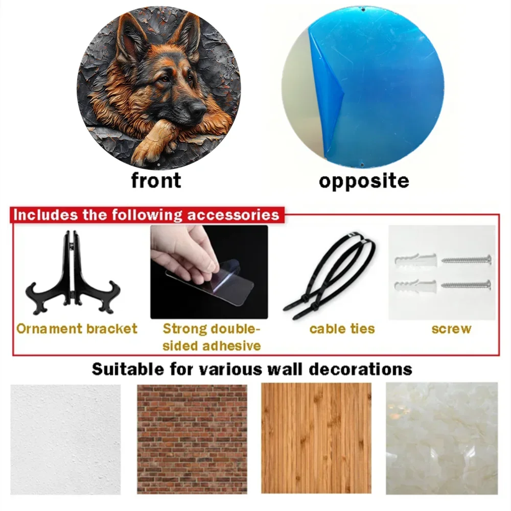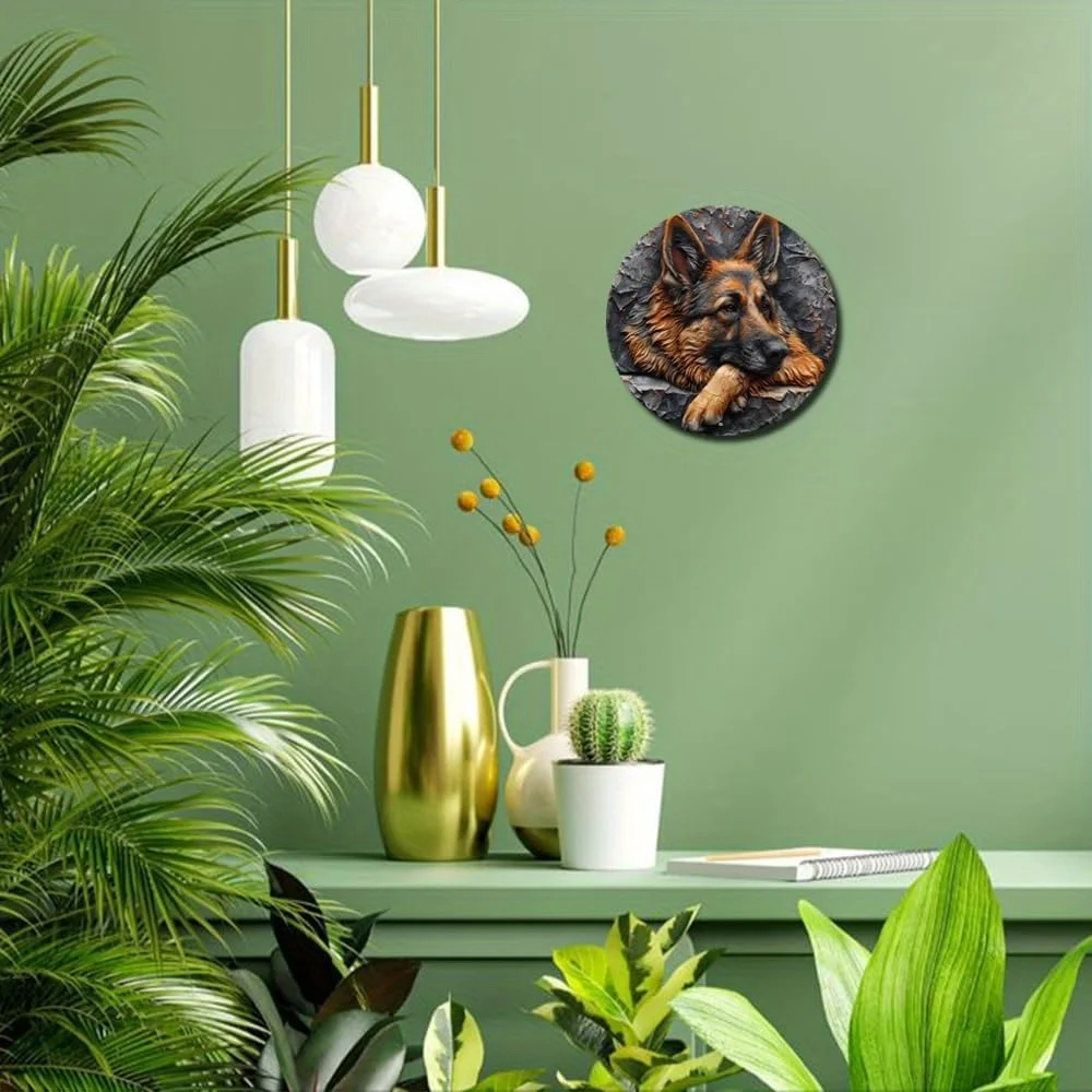 Round Aluminum Flat Sign, Sheepdog Imitation Copper Relief Art Decor, Hanging Wall Art, Hanging Ornament, Home Decor