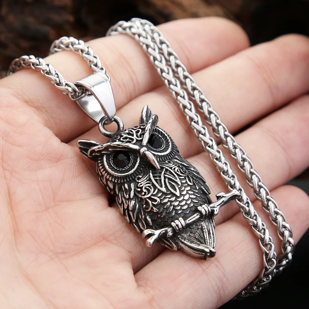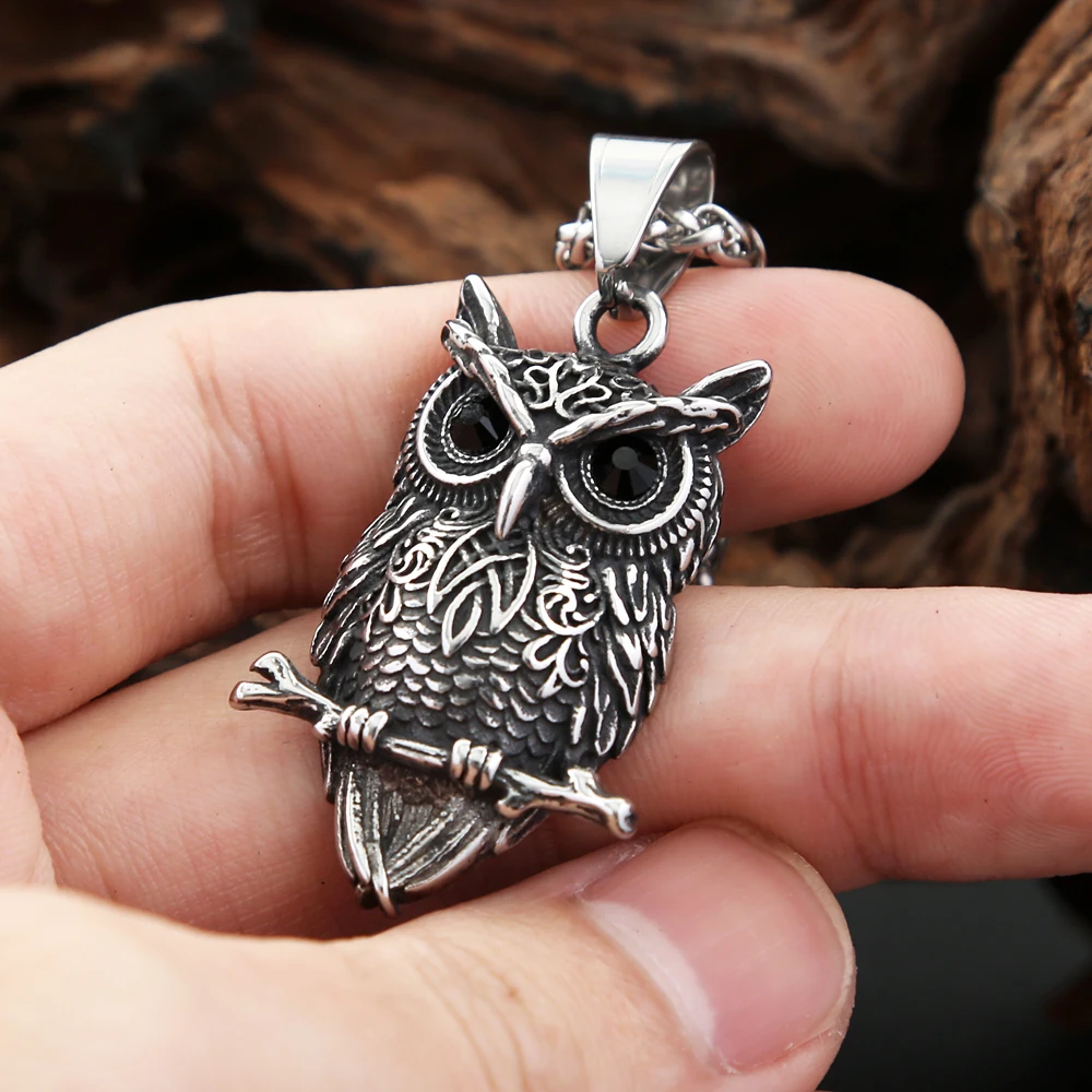 Name: Gothic Vintage Owl Pendant Necklace Men's Stainless Steel Charm Personality Creative Punk Hip Hop Cycling Party Halloween Gifts