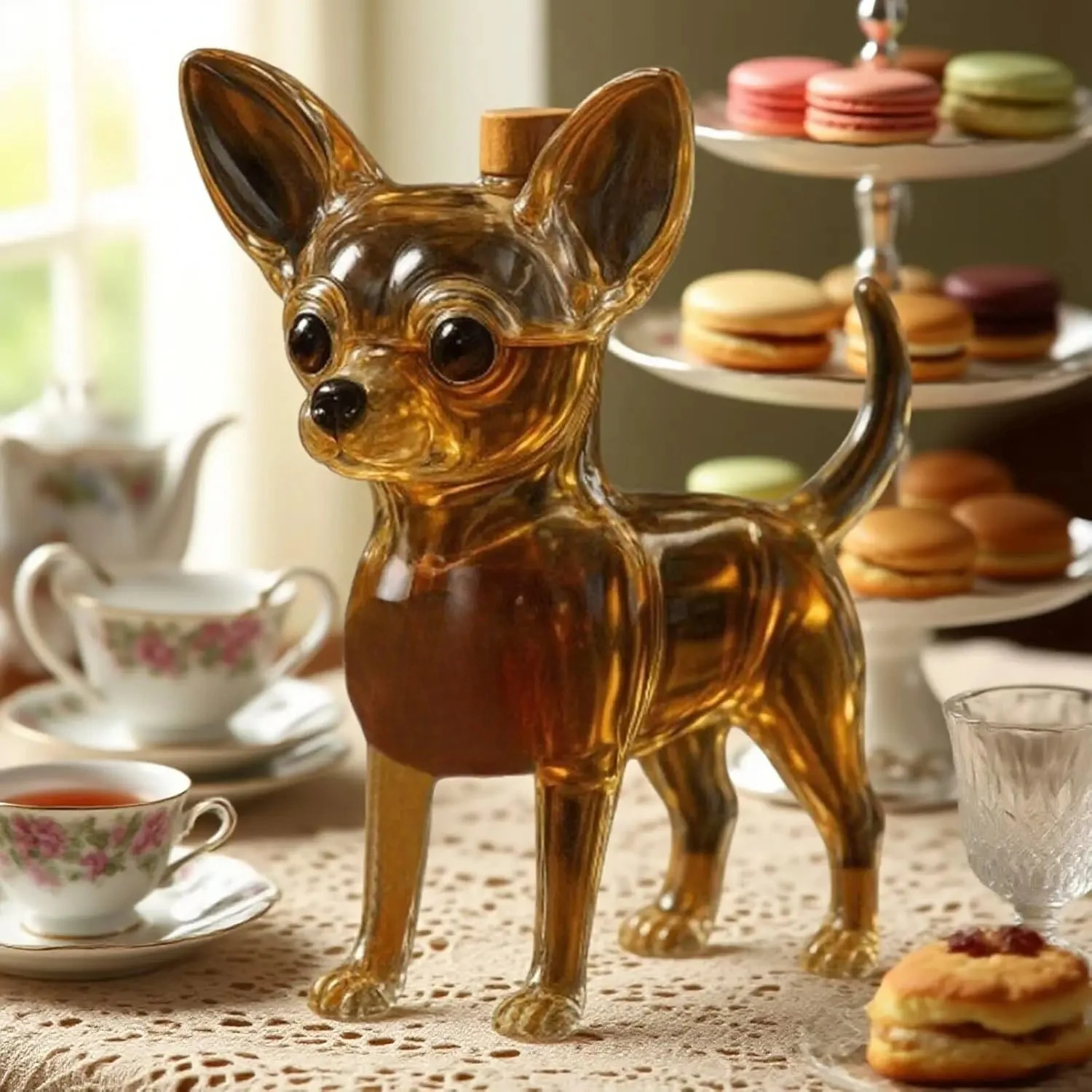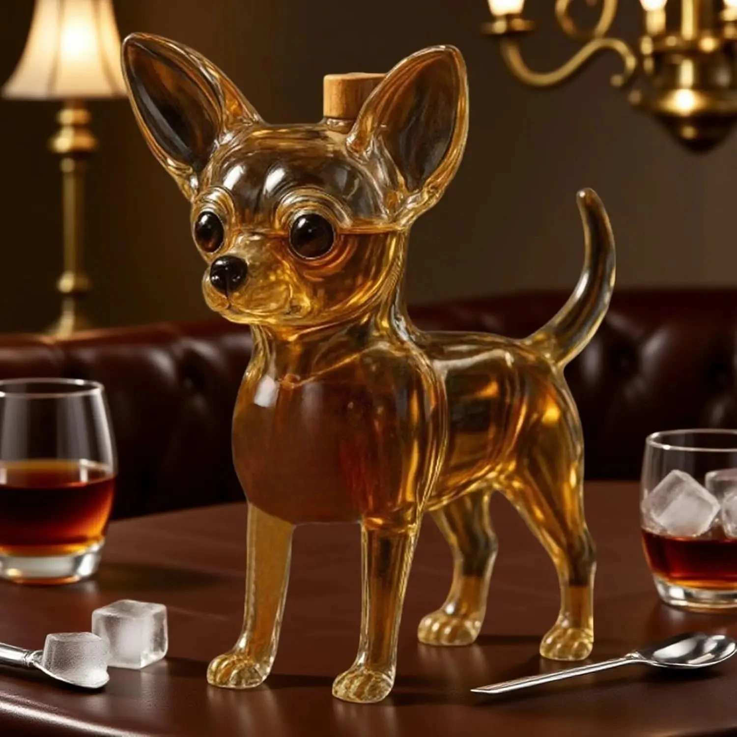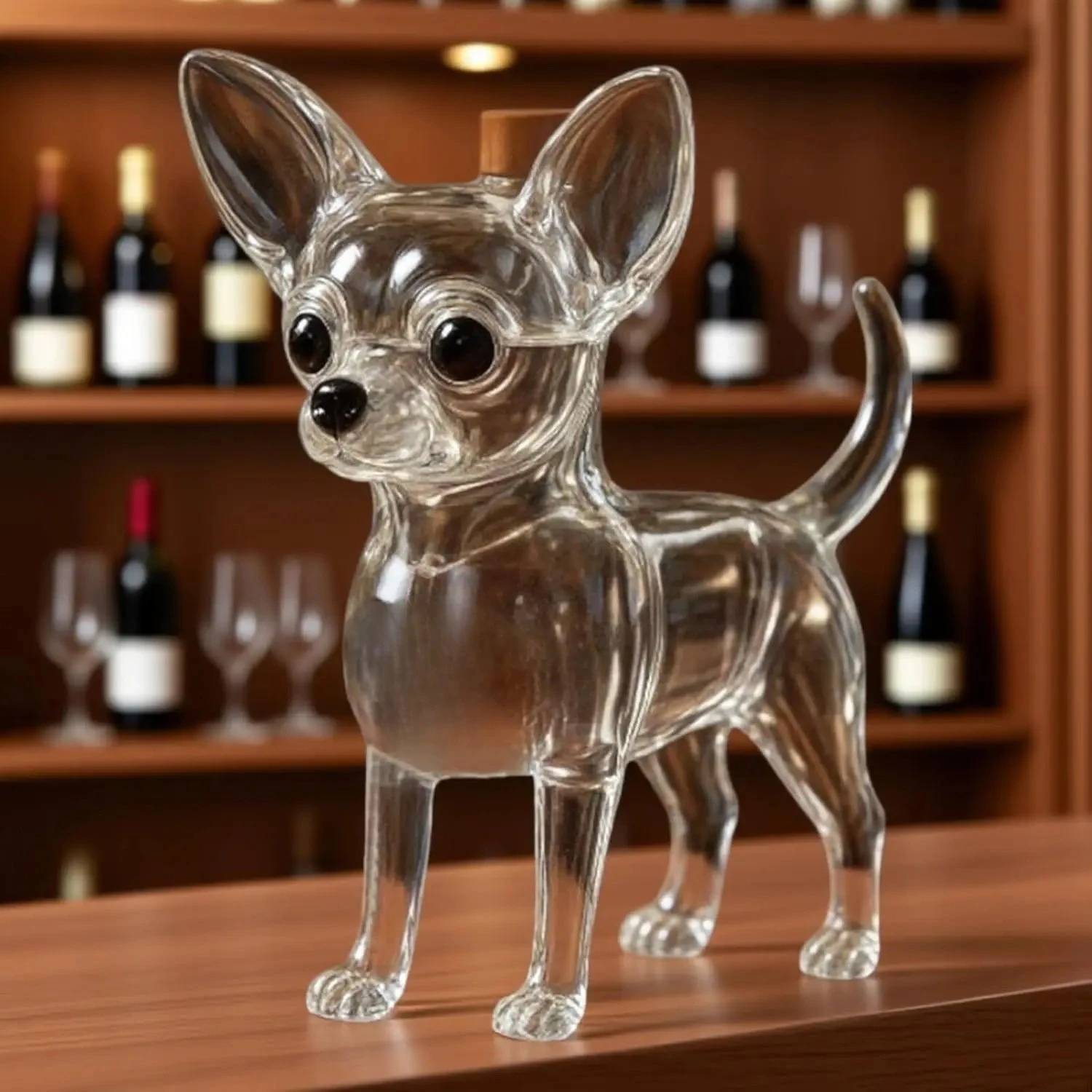 Chihuahua-shaped whiskey decanter | Hand-blown collectible wineware | Creative animal-designed ornaments | Bar and home art decor | The perfect gift for men