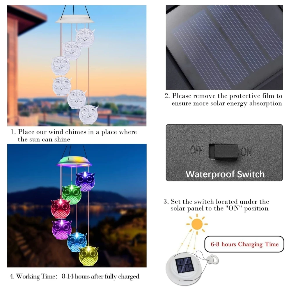 Outdoor Wind Chimes Solar Led Color Changing Owl Lights Solar Wind Chimes Lamp Garden Decorations Birthday Gifts